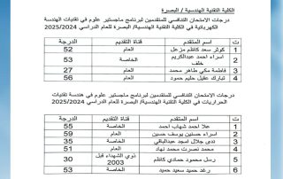 الكلية التقنية الهندسية البصرة تعلن عن نتائج الامتحان التنافسي الإلكتروني……..