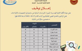 اجرت الكلية التقنية الهندسية البصرة المقابلات للمتقدمين على الدراسات العليا[...]