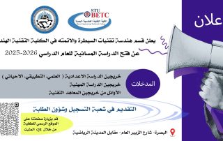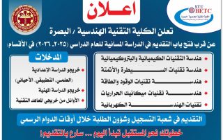 تعلن الكلية التقنية الهندسية – البصرة عن قرب فتح باب[...]