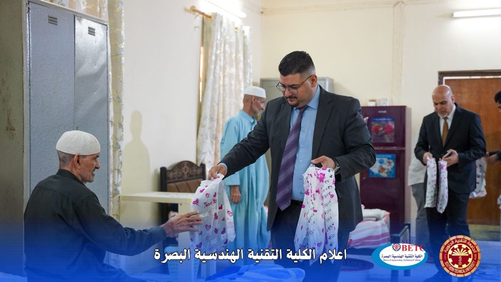 انطلاقاً من قيم المسؤولية المجتمعية، نظّمت الكلية التقنية الهندسية – البصرة حملة تطوعية لدار رعاية المسنين تحت شعار “إكرام الكبار واجبنا”، بمشاركة السيد عميد الكلية الأستاذ المساعد الدكتور نورس جميل جاسم، وعدد من تدريسيي الكلية.