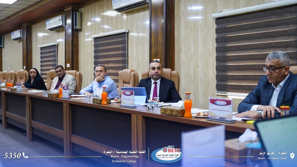 عقد مجلس الكلية التقنية الهندسية – البصرة جلسته الخامسة الانعقاد الثالث للعام الدراسي 2025–2026 برئاسة الأستاذ المساعد الدكتور نورس جميل جاسم، عميد الكلية، وبحضور أعضاء المجلس.