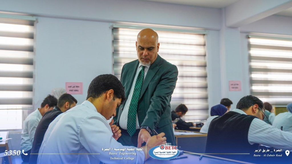 The Dean of Basra Engineering Technical College , Assistant Professor Dr. Nawras Jameel Jasem, conducted an official inspection tour to oversee the progress of the final examinations for first-year undergraduate students for the First Semester of the Academic Year 2025–2026. 📘✍️
